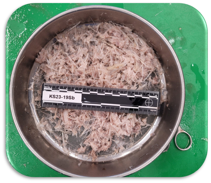 Gut contents sample (left) and homogenized samples for eDNA analyses (right). Photo credit: Cetacean Ecology Research Group (CERG)